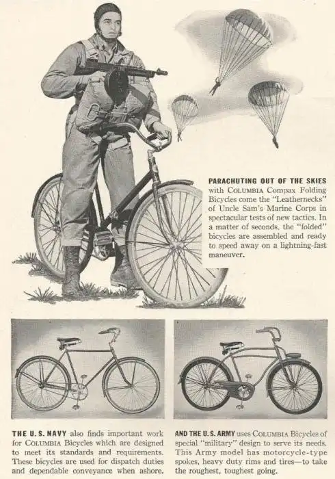 "Columbia Light Roadster. Единственный велосипед, на регулярной основе используемый военными. Создан лучшими производителями велосипедов США, Pope Manufacturing Co."