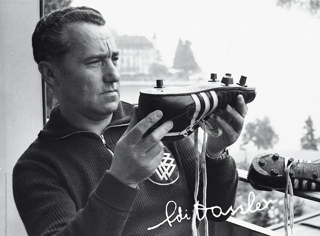 В финальном матче того Мундиаля немцам противостояла «Золотая команда» сборной Венгрии с великим Ференцем Пушкашом. На групповом этапе венгры разгромили команду ФРГ со счётом 8:3 и мало кто сомневался, что судьба титула уже предрешена. Первый тайм закончился со счётом 2:2. Во втором тайме пошёл сильный дождь и Адольф Дасслер тут же позаботился о том, чтобы его футболисты поменяли промокшие ботинки на новые, с более длинными шипами. Игроки сборной ФРГ получили явное преимущество в маневренности и ведении единоборств и на 84-й минуте матча Хельмут Ран забил победный гол. Матч вошёл в историю под названием «Бернское чудо»