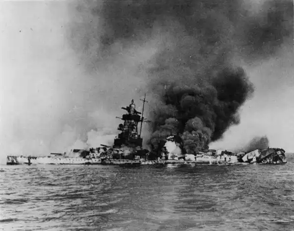 Конец немецкого рейдера. «Шпее» подорван экипажем и горит