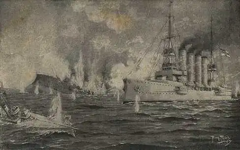 Немецкая открытка с изображением крейсера «Эмден» и