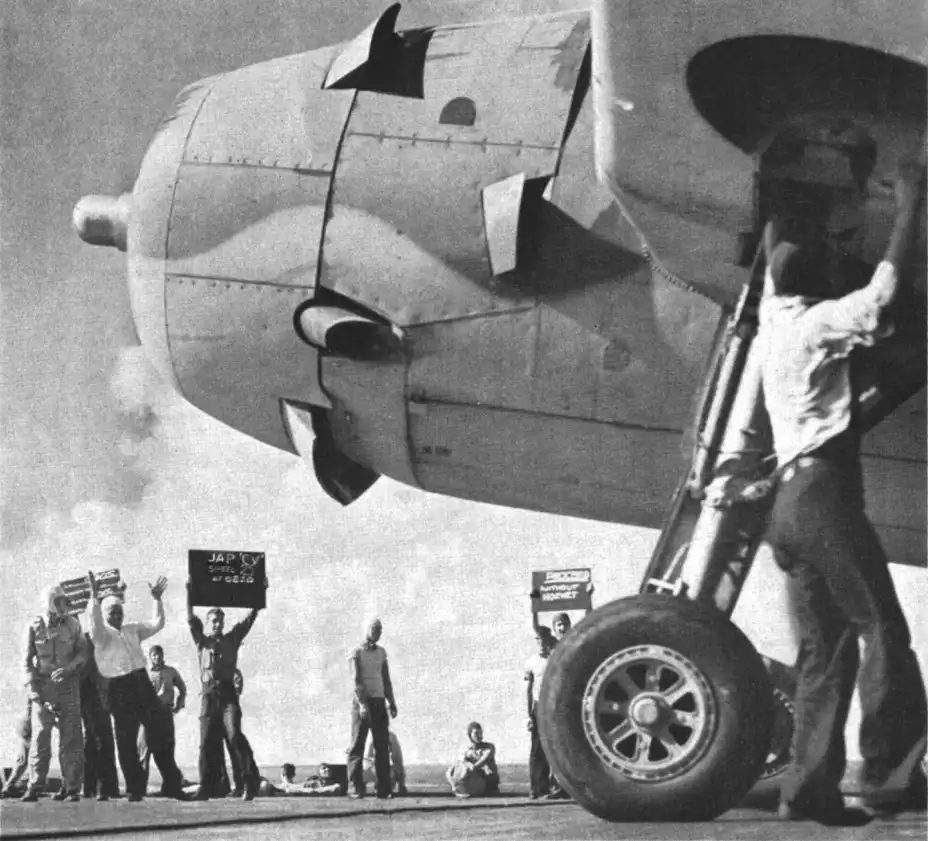 Плакат в руках палубного рабочего авианосца «Энтерпрайз»