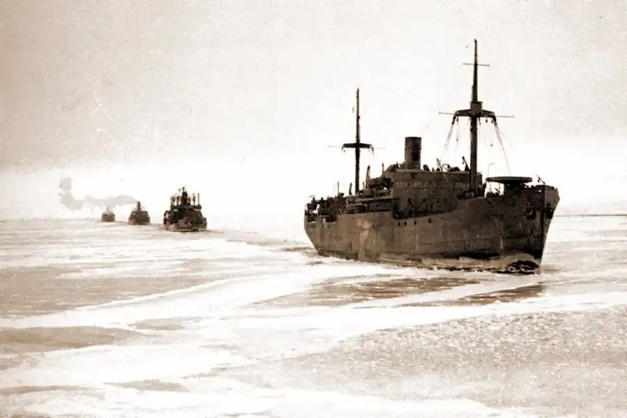 Если конвои приходили в осенне-зимние месяцы, то к проводке подключались ледоколы, без которых порты, включенные в состав Архангельского морского торгового порта, не могли принимать транспорты.