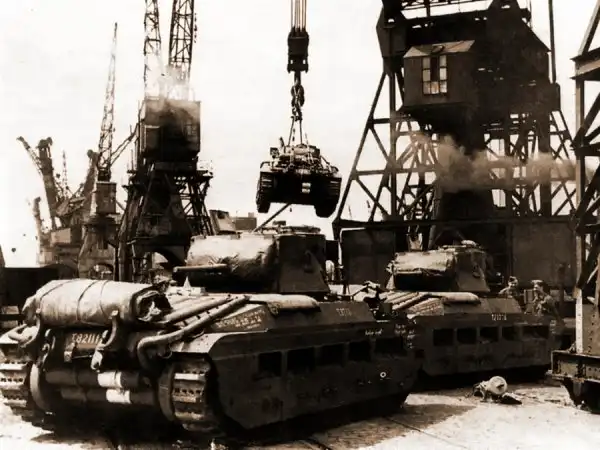 «Матильды» в процессе погрузки в одном из британских портов