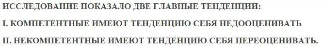 - Cамые способные (обозначенные как компетентные) имели тенденцию свои способности недооценивать. Это объясняется тем, что если какое-то задание человеку кажется простым, то у него складывается ощущение, что это задание будет простым и для всех остальных.