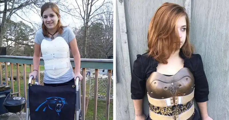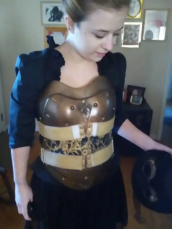 Не так давно Мэдди попала в автокатастрофу и сломала грудные позвонки, поэтому теперь она вынуждена носить ортопедический корсет. К счастью, подруга семьи и участница театральной группы Сара помогла девушке превратить ее корсет в оригинальную стимпанк-броню.