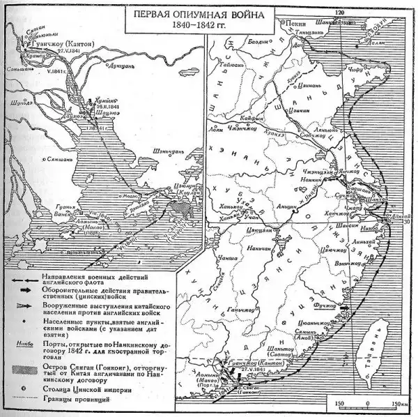 Английский флот также направился к Кантону. В Динхае три четверти оставленного оккупантами гарнизона были к тому времени небоеспособны из-за болезней. Это, однако, не помешало упорным англичанам провести рекогносцировку Янцзы, пройдя почти сотню километров вверх по течению реки. Удобный путь в глубь Китая был открыт, и это сыграло решающую роль в дальнейшем ходе войны.