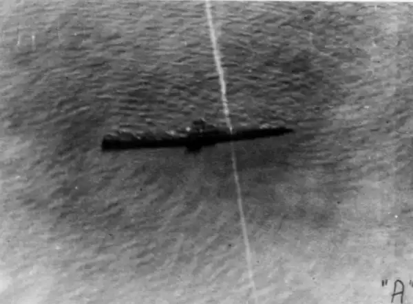 На фото «А» – один из многочисленных проходов торпеды под килем