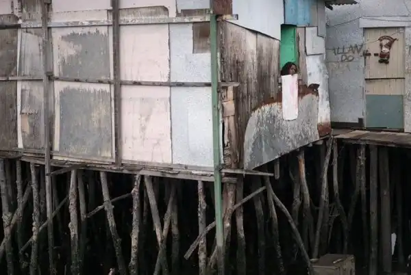Девочка выглядывает из окна своего дома в трущобах Ресифи. Если жилье нельзя возвести на земле, его всегда можно построить над местным прудом, воду из которого пить уже давно нельзя.