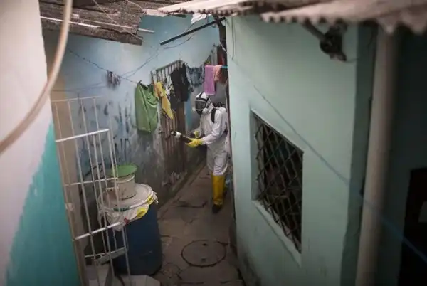 Сотрудник муниципальных служб опрыскивает инсектицидом стены домов в районе Имбирибейра. После того как страна оказалась перед угрозой эпидемии лихорадки Зика, по приказу президента Бразилии Дилмы Руссефф в бой против москитов была брошена армия. Более 220 тысяч военных сведены в специальные бригады, которые обходят дом за домом, рассказывая о том, как избежать заболевания.