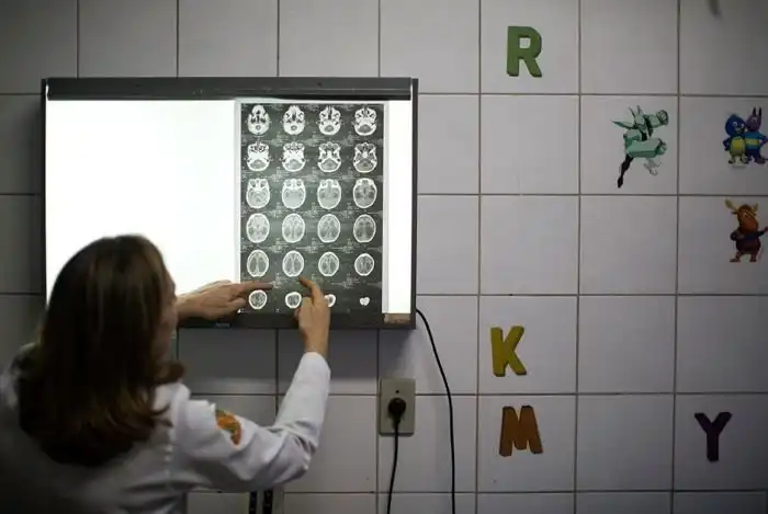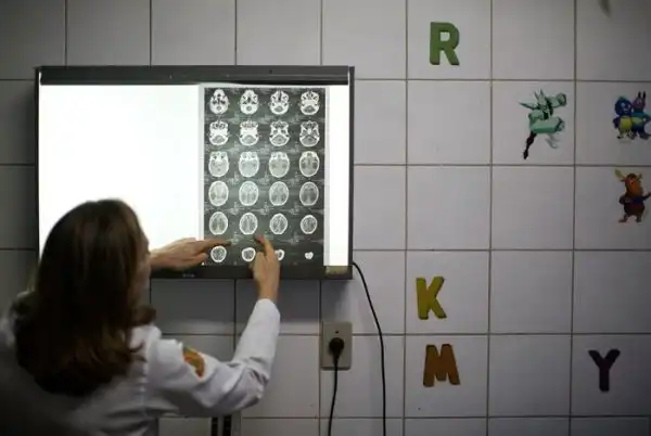 Доктор Анхела Роча изучает снимки мозга больных микроцефалией.