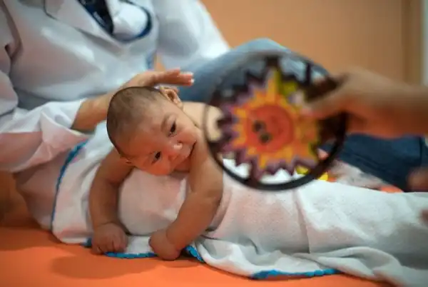 Трехмесячный Даниэль во время сеанса терапии в больнице.