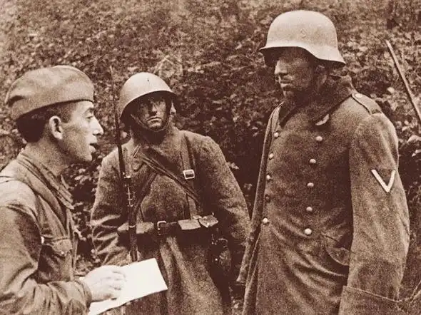 Несколько дней блуждал по лесам, пробираясь к своим. Ориентировался по звукам артиллерийской канонады. Уже замерзая, в полусне, приполз в какое - то село. Там меня, еле живого и схватили немцы. Сопротивляться им я был не в состоянии. Заперли в сарае. Затем потащили на допрос. Что-то спрашивали два немецких офицера, а я не слышал их и молчал. Начали бить. Было же видно, что я был в бою, сражался, убивал их. Думал, что до смерти забьют. Хотя боли не чувствовал. Терял сознание, приходил в себя от того, что обливали водой, потом вновь выключался. В таком состоянии оказался в лагере для военнопленных в Можайске. Уже там маленько оклемался. Ребята из нашего полка помогли. Тогда же начали планировать побег. Случай представился лишь во время пересылки. Многих из лагеря постоянно куда - то уводили. Настала и наша очередь. Построили и повели на станцию. По дороге с десяток застрелили. Из тех, кто падал и не мог идти. Погрузили в вагоны и повезли на Запад. Вот из вагона то мы и бежали. Выломали доски. Вагон был деревянный, старый. На полном ходу прыгали в снег, ночью. Группа из нескольких беглецов шла ночами. Грелись в сараях, просили еду в крестьянских домах. Хотели найти партизан или пробиться к своим. Но никто не знал, что с Красной Армией, сражается она или нет. Никто не мог толком рассказать, где лагеря партизан. В конце концов, ноги привели меня в родное село, на Харьковщину. Там, в Перекопе, жил мой батя, брат Гриша, сестра. Брата в армию не забрали, он сильно верующий был, в отца. У него я и поселился. Вначале никто меня не узнал. Пришел весь в лохмотьях, грязный, на старика похож, с бородой. Ну а потом, весть о том, что Иван Добробаба вернулся, быстро разнеслась по селу. Все друг друга знают. Вызвали к старосте. Я знал его, неплохой дядька, справку мне выдал. И предложил идти к нему на работу. Не то в Германию на каторгу заберут. Я ему поверил. Тем более, что кому - то надо было следить за порядком в селе и округе. Опять - таки, и люди меня просили: «Иди, Иван, охраняй покой. Ты человек военный, опытный. Помощником всем будешь. А то пришлют еще чужого. Беда будет». Так я и записался в полицию. Изменой это тогда не считал. Думал, как жить дальше, семье помочь, селянам. Охранял железную дорогу, станции, склады. Никого никогда не обидел. От румынов, которые грабить приходили, много домов защитил. От угона в Германию, еще больше спас. Особенно из тех, кто помоложе. Их в Рейх очень быстро забирали. Хотя многие и сами ехали, по большей части девчата. Ну а как стала Красная Армия приближаться к нашим краям, задумался, что делать дальше.