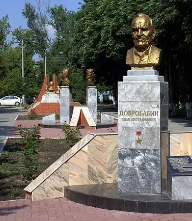Памятник Добробабину на аллее Героев в Цимлянске
