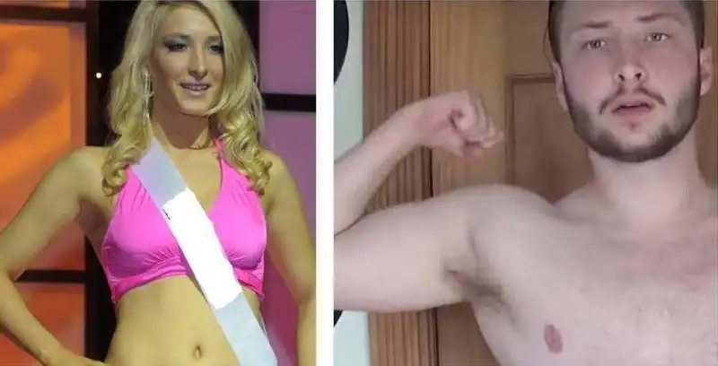 Стать мужчиной! Справа бывшая «мисс» в своем нынешнем облике – 23-летнего парня Эштона Колби.