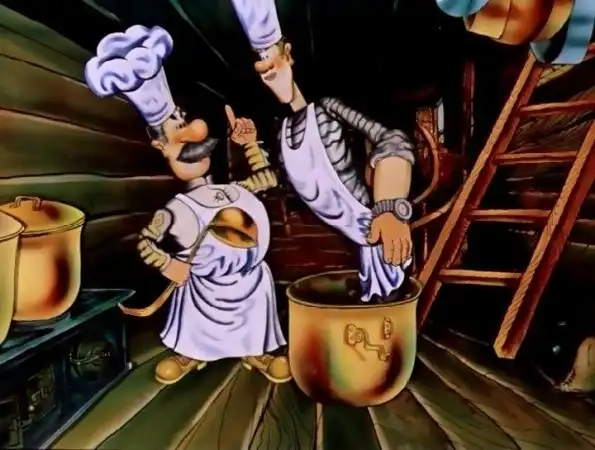 Кроме того, в Приключениях использовали и другой необычный для тогдашней мультипликации прием, когда в мультяшную жизнь вставлялись настоящие изображения моря или лесного пожара. Причем делали это, по словам Черкасского, только из‑за нехватки времени. Ведь в год съемочная группа успевала выпускать лишь три десятиминутные серии. А всего их за три года появилось 13.
