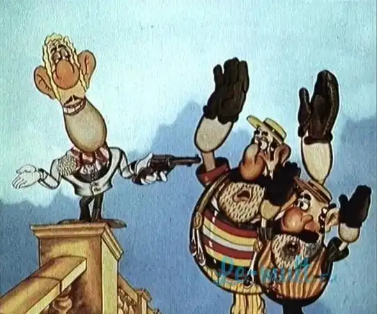 На подводной лодке гангстеров написано латинскими буквами: «Podvodnaya lodca». Этот приём не нов: в мультфильме Леонида Аристова «Африканская сказка» встречались написания «Protokol» и «Prigovor».