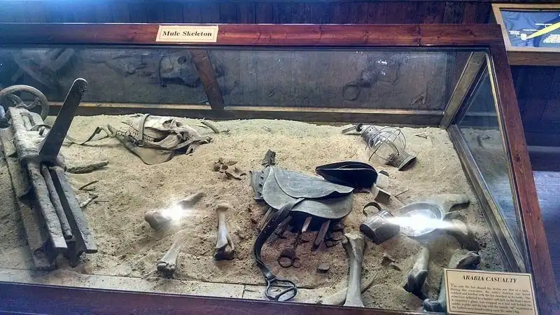 Здесь также представлены оригинальные котлы, двигатель, и якорь Аравии, и скелет одинокого погибшего мула.