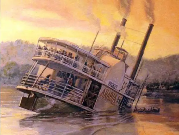Пароходу «Аравия» было только три года, и он уже сделал много успешных поездок вверх и вниз по предательской реке. Пароход был оснащен двумя большими гребными колесами по бокам, что давало ему возможность легко маневрировать вокруг опасных отмелей и коряг.