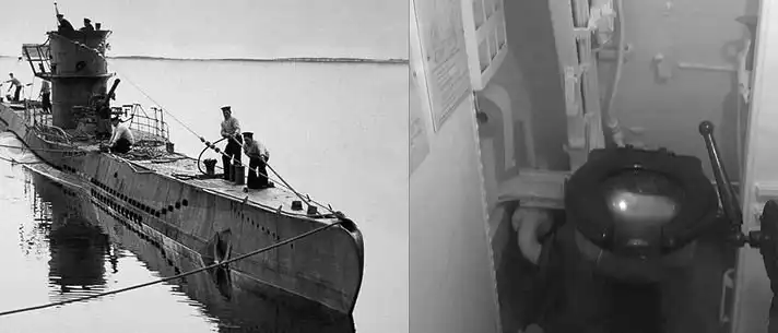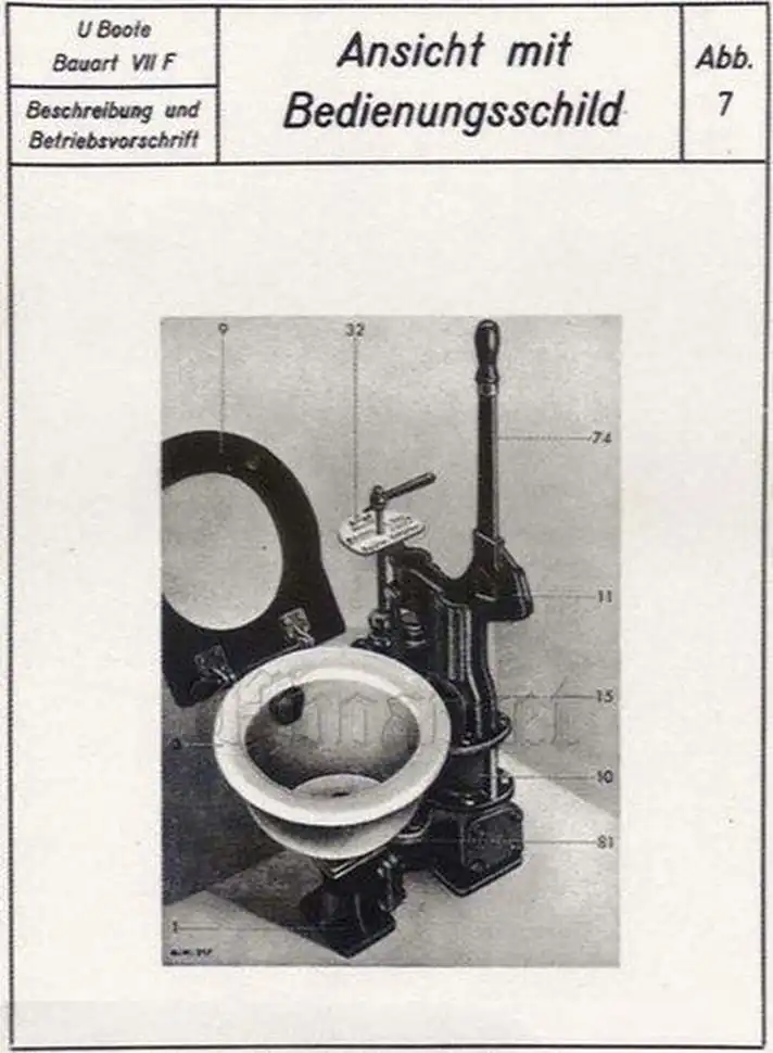 Тут необходимо вспомнить о таком насущном моменте на подводной лодке как «гальюн». Существовавшая до этого конструкция, допускала использование гальюна на глубинах не больше перископной, то есть у поверхности. Зато усовершенствованная модель на U-1206 позволяла делать все, что нужно на всех глубинах, доступных подводному кораблю. Правда, механизм простотой не отличался. Под унитазом помещался большой сборник, куда смывалось все лишнее с помощью вращения штурвальчиков. Сборник находился под небольшим давлением, чтобы “ароматные" газы не прорывались при пользовании внутрь лодки, где и так дышать было трудно. После переполнения сборника туда подавался сжатый воздух, выкачивающий все его содержимое за борт на любой глубине, по специальному трубопроводу, закрытому особым клапаном. Помимо всего прочего эта система не допускала всплытие отходов на поверхность, а раньше подобные случаи бывали, что нарушало скрытность пребывания субмарины на позиции. Правда образец отличался повышенной сложностью функционирования, и один из механиков лодки даже закончил специальные “туалетные курсы".