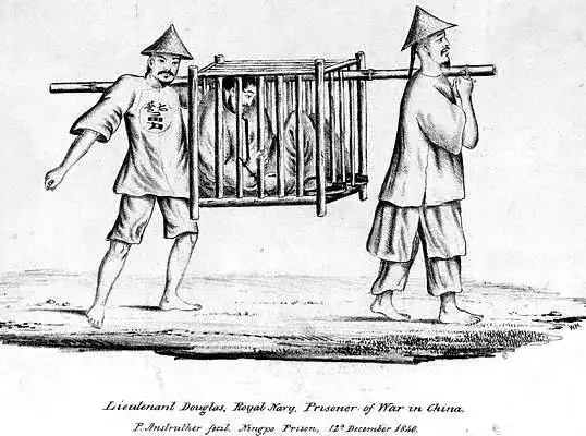 Кстати, пленных китайцы «конвоировали», перенося их при помощи носильщиков в бамбуковых клетках, а англичане, пользуясь традиционной маньчжурской причёской, связывали своих пленников косами друг с другом по несколько человек. Эта причёска – с выбритым лбом и длинной косой сзади – была обязательной для всех подданных Цинской империи мужского рода, кроме монголов и тибетцев. Китайцы воспринимали маньчжурскую причёску как символ национального унижения, но за отсутствие данной прически или срезание кос китайским подданным империи Цин грозила смертная казнь.