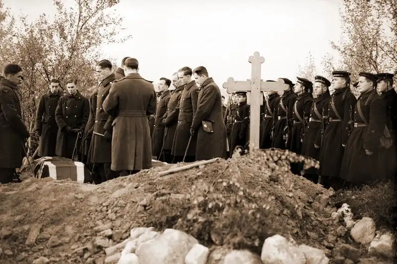 Похороны лётчиков 151-го крыла Королевских ВВС на военном