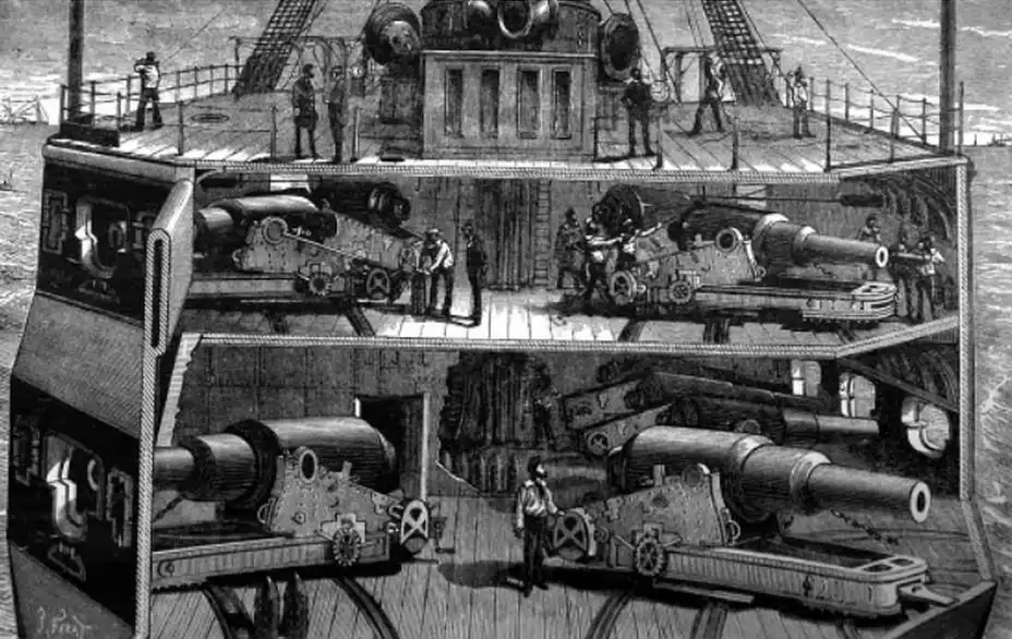 Начиная примерно с середины XIX века кораблестроительная инженерная мысль находилась в таких же исканиях и метаниях, как и танкостроение в период между двумя мировыми войнами. Казалось бы, не прошло и полувека с того дня, как Наполеон Бонапарт безапелляционно заявил создателю колёсного парохода Роберту Фултону — «Корабли без парусов — это нонсенс!», а эпоха линейных парусников как основной боевой силы флота начала стремительно уходить в прошлое.