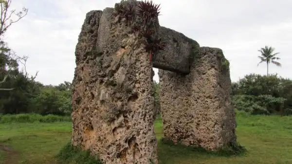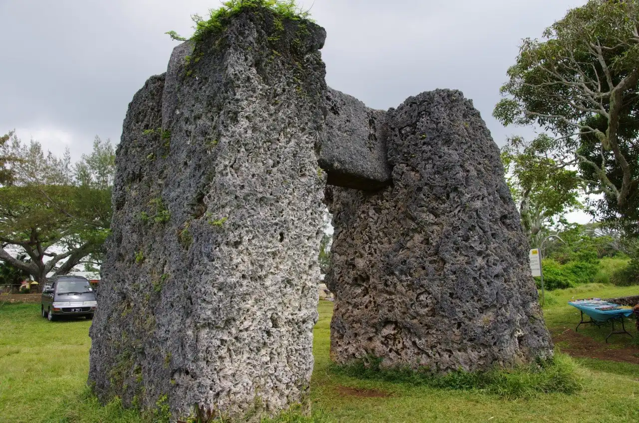 Но именно с загадочного мегалита - Ворот Тонга, начинается знакомство любого иностранца с Тонгатапу. Сооружение представляет собой каменные блоки, сложенные в форме буквы «П», стоящие в пальмовых зарослях. На двух столбах из кораллового известняка высотой около пяти метров лежит шестиметровая каменная перекладина, укрепленную в пазах, выдолбленных в верхней части столбов. По приблизительным расчётам, три массивных блока весят не менее 40 тонн.Ученые недоумевают: как 1200 лет назад было построено такое странное сооружение, и каково его назначение? Часть археологом считает, что мегалит — вход на существовавшую в прошлом королевскую территорию, но в округе не найдено никаких других строений — одни ворота. Куда они вели?