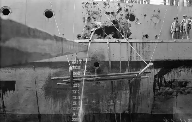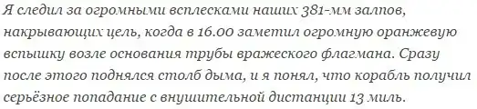 Затем произошло необычное: в 15:59 381-мм снаряд британского линкора попал в среднюю часть корпуса итальянского флагмана. Адмирал Каннингхэм вспоминает: