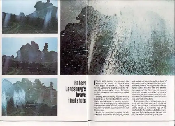 В 1980 году американский фотограф Роберт Ландсбург снимал извержение вулкана Сент-Хеленс и в какой-то момент осознал, что спастись ему не удастся. Тогда он упаковал свою камеру в чехол, положил чехол в рюкзак и закрыл его своим телом, чтобы уберечь снимки для исследователей.