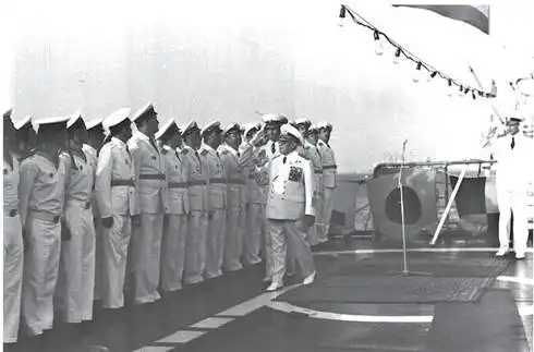 15 сентября операция по тралению в нашей зоне ответственности была практически завершена. На ПКР "Ленинград" прибыла военная делегация НДРЙ во главе с министром обороны бригадным генералом А. Касемом и командующим ВМС капитаном 3 ранга А. Мухаммедом. Они ознакомились с кораблем и поблагодарили советских моряков за хорошую работу. Две недели на отдых, пять дней учебных сборов, заправок, и отряд черноморских кораблей взял курс на Средиземное море и далее на Севастополь.