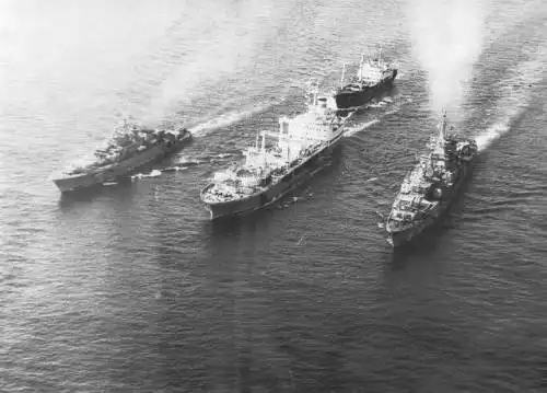 "Колечицкий" шел шестым в утреннем караване из Горьких озер. По выходу из канала танкер отдал якорь на внешнем рейде Суэца, ожидая корабли отряда - дальше всем предстояло идти в походном ордере, пустив вперед тральщики.