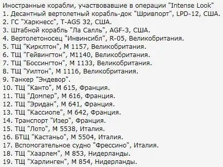 В Красное море к тому времени уже находились 3 американќских корабля, в том числе штабной корабль 6-го флота "Ла Салль", и 7 вертолетов-тральщиков, 5 английских кораблей, 3 французских (еще 3 были на подходе) и 3 итальянских. Кроме того, в обеспечении операции были задействованы французские корабли, базировавшиеся в порту Джибути на постоянной основе.