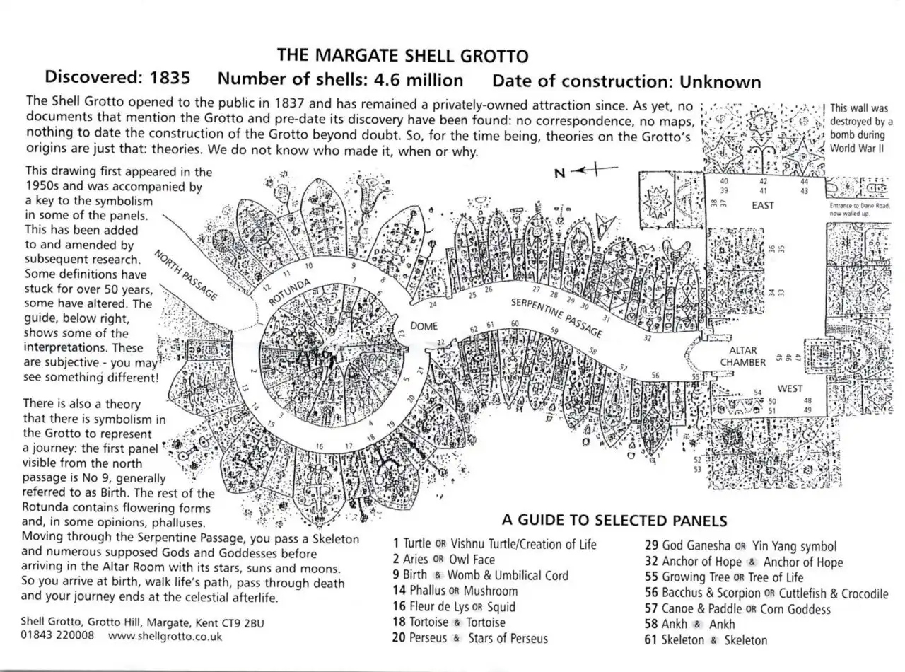 Грот ракушек (Shell Grotto) в городе Маргит – одна из самых загадочных достопримечательностей Великобритании. Его происхождение до сих пор остается загадкой, несмотря на то, что обнаружен он был в далеком 1835 году. Грот представляет собой подземный извилистый коридор (длина его составляет более 20 метров), стены которого украшены 4,6 млн. раковин.