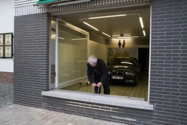 Бельгиец из города Бракель владел небольшим продуктовым магазинчиком на первом этаже своего дома, но бизнес не пошел, и мужик вынужден был закрыться. Превращать торговую площадь обратно в жилую - накладное дело, а вот переделать магазин в гараж проще простого.