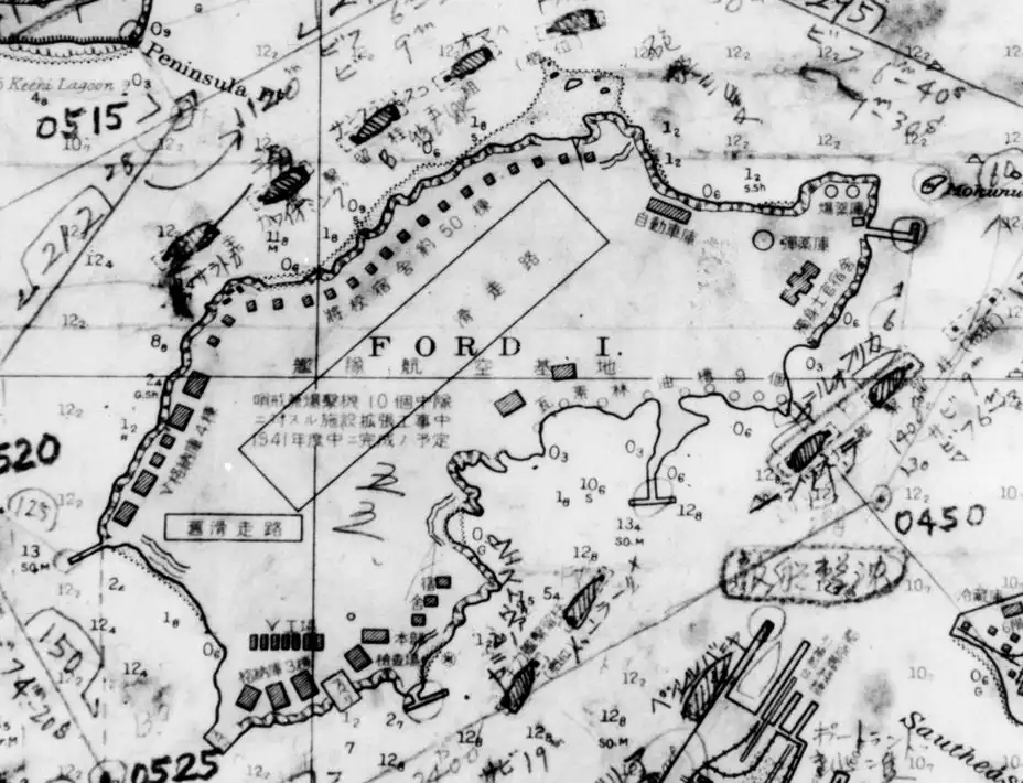 Фрагмент японской навигационной карты гавани Пёрл-Харбор,