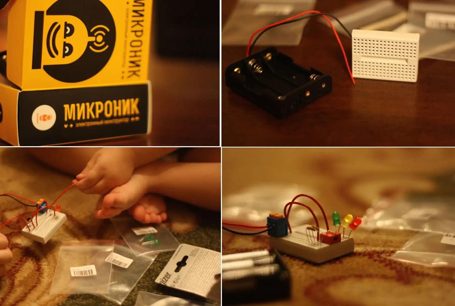 Большая серия развивающих детских конструкторов с возможностью воплощать до 1000 различных схем и "конструкций". Он отличается большей наглядностью, размерами компонентов, удобством их крепления к плате. Комплектуется, как и "Микроник" инструкциями по сборке моделей, где наглядно показана последовательность крепления элементов и их зависимость друг от друга.