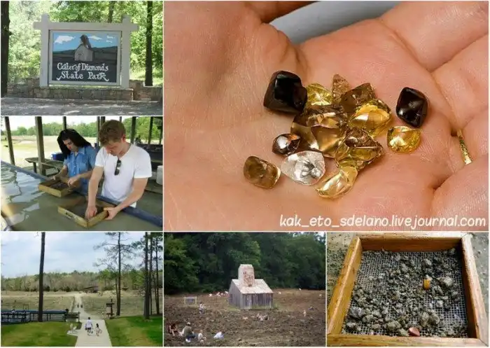 В городе Мерфрисборо, штат Арканзас, США, находится «Кратер алмазов» – единственный в мире алмазный карьер, открытый для публики, где, заплатив небольшую сумму за вход, любой желающий может попытать счастья в поиске драгоценных камней и оставить себе все, что он ни найдет.