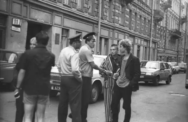 В 1984 году фестиваль рок-клуба обслуживал городской оперативный отряд, комсомольская дружина из 50—100 человек. Всех, кого в чем-то могли заподозрить, тащили в околоток. И мы увидели, что Сашу Ляпина (на тот момент гитарист «Аквариума». — OS) тянут, я вступился за него, Дюша (Романов, флейтист «Аквариума». — OS) — за меня, Сашу мы отбили, а нас двоих увезли на «воронке» в пятое отделение и сунули в чулан на сутки, пока не приехали некий Владимир Вадимович, который оказался куратором от КГБ. Он нас оттуда вызволил, хотя нам уже обещали 15 суток.