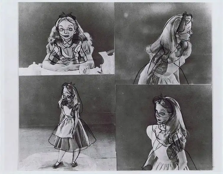 Так проходили съемки мультфильма "Алиса в Стране чудес", для которых аниматоры создавали похожие ситуации как в мультфильм. Это была настоящая школа мультипликации