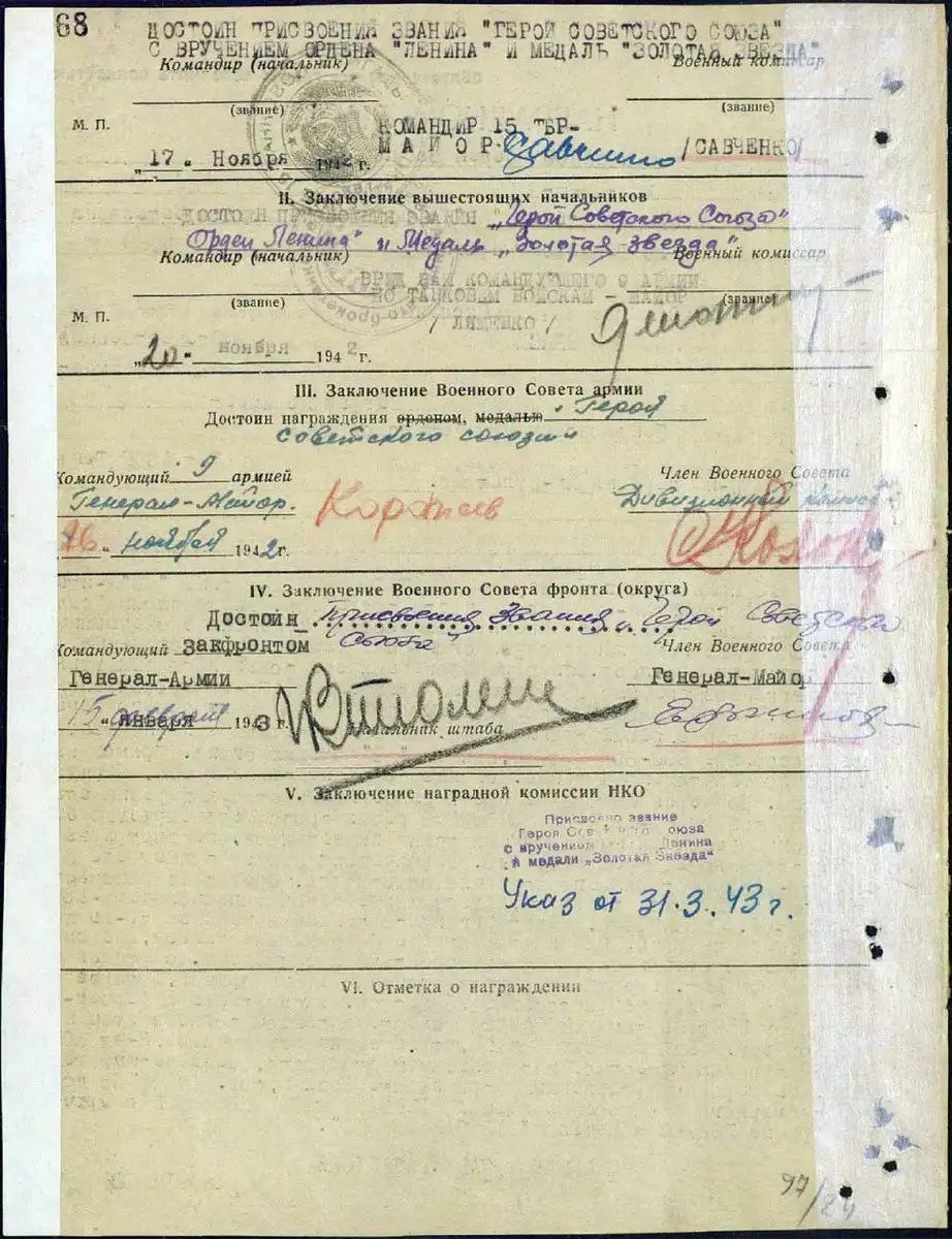 Экипаж танка с Героем-командиром Лейтенантом КОНОВАЛОВЫМ вместе с танком погиб в этом неравном бою. Защищая нашу Родину от немецких захватчиков, л-нт КОНОВАЛОВ проявил мужество, непоколебимую стойкость, беззаветный героизм. За героизм проявленный при защите Родины, тов. КОНОВАЛОВ достоин посмертного присвоения звания «ГЕРОЙ СОВЕТСКОГО СОЮЗА» с вручением Ордена ЛЕНИНА и Медаль «ЗОЛОТАЯ ЗВЕЗДА».