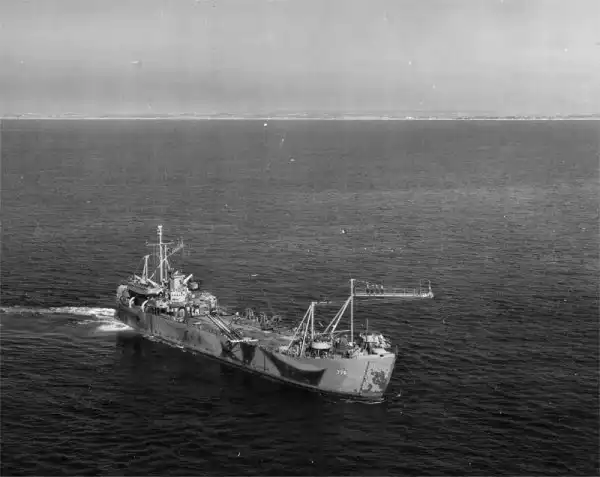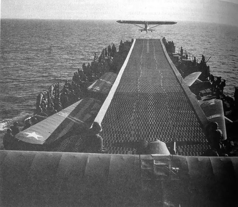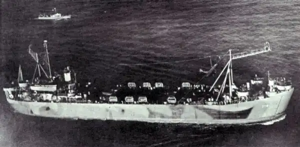 Авиагруппа включает четыре "Пайпера", однако по пути один из них был потерян - смыт с палубы. 26 марта 1945 запущенный с LST-776 Piper L-4 (или Piper OY-1, на корабле возможно были и армейские и флотские "Пайперы") обнаружил на островах Керама 50-60 пещер из которых шли рельсы в воду. Оказалось что в этих пещерах обосновались камикадзе с быстроходными взрывающимися катерами.
