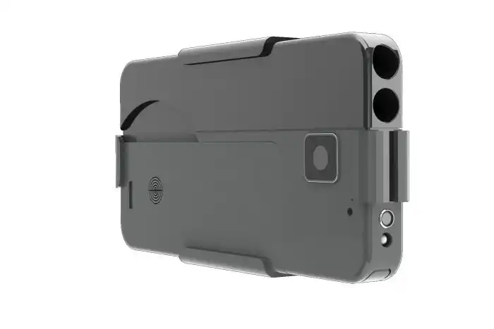 Перед вами двуствольный пистолет для самообороны, который в сложенном виде напоминает смартфон. Две 9-миллиметровые пули способны защитить вас от преступника, а привести оружие в боевое положение можно в течение нескольких секунд. Пистолет продается в США менее чем за 400 долларов и в некоторых штатах на него даже не потребуется права на ношения оружия.