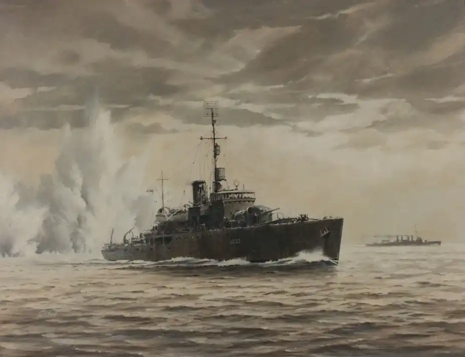 Корвет «Wagga» в бою с японскими самолётами 14 апреля 1943 года.