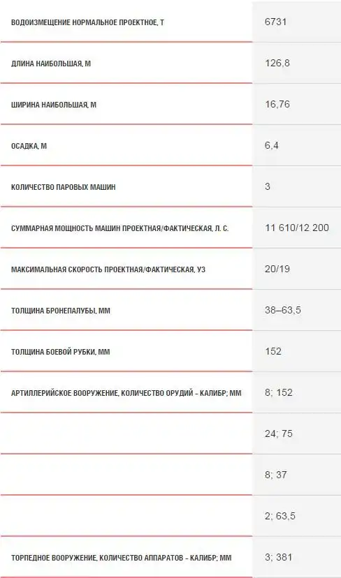 Тактико-технические характеристики крейсера 1-го ранга «Диана»