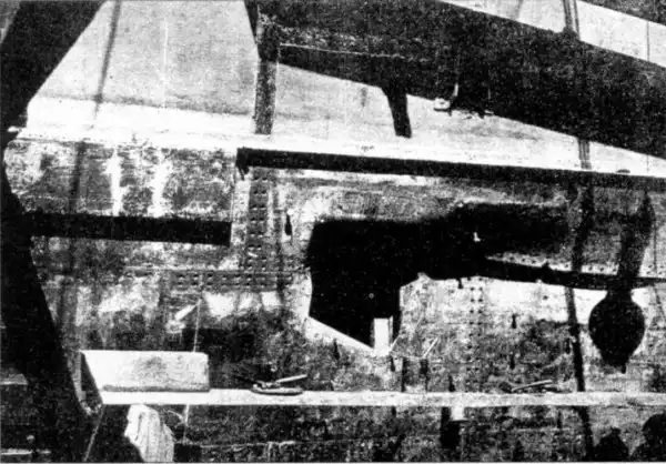 Подводная пробоина «Дианы» от неразорвавшегося 203-мм снаряда