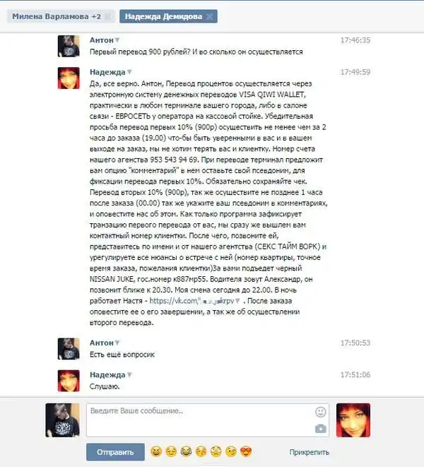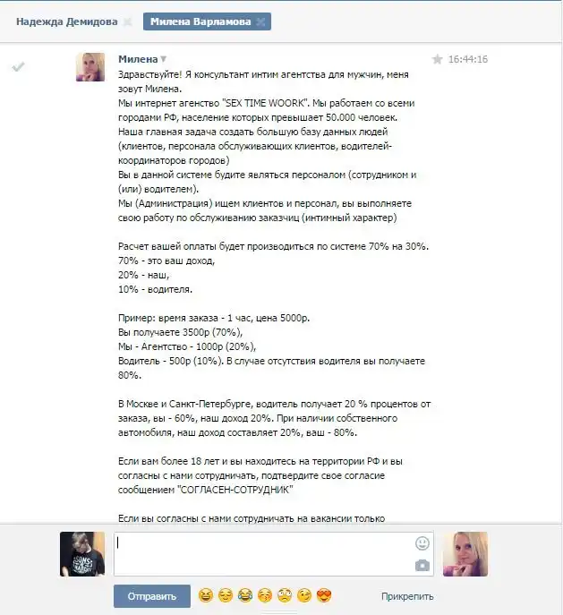 Далее вас ждет история от одного пользователя социальной сети, которого хитрый мошенник пытался развести на деньги. Суть обмана очень проста, мужчинам предлагают оказывать услуги интимного характера за солидное вознаграждение.
