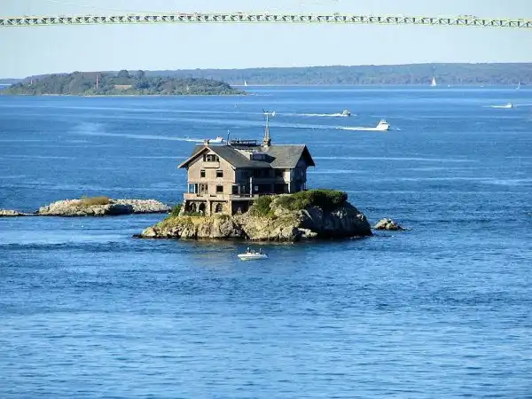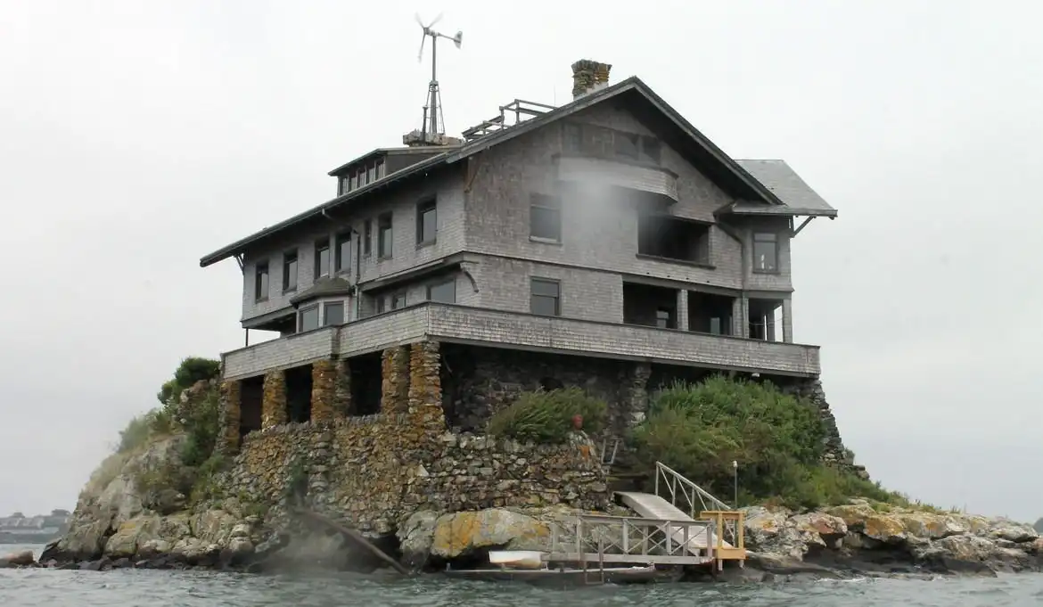 Этот удивительный трехэтажный дом был построен на крошечном скалистом острове недалеко от американского города Джеймстауна в 1905 году. Как ни странно, дом пережил столетия и лишь дважды подвергался реконструкции.