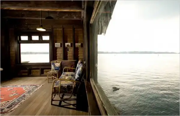 В 1961 году архитектор Генри Вуд и его жена купили этот удивительный особняк на острове, в заливе Наррагансетт Атлантического океана, штат Род-Айленд, всего за 3600$. Сегодня дом Clingstone House, которым занимались дизайнеры Лоринг Уортон и Уильям Трост Ричардс, привлекает своим теплом и уютом. Здесь с любой точки открывается неповторимый вид на океан. В этом трехэтажном доме располагается 23 комнаты, причем 10 из них являются спальными. Сейчас за такую маленькую сумму едва найдешь даже небольшой домик. Хотя само содержание дома не из дешевых, т.к. морская вода пагубно влияет на дубовые балки. На что только не пойдешь, ради жизни в раю!