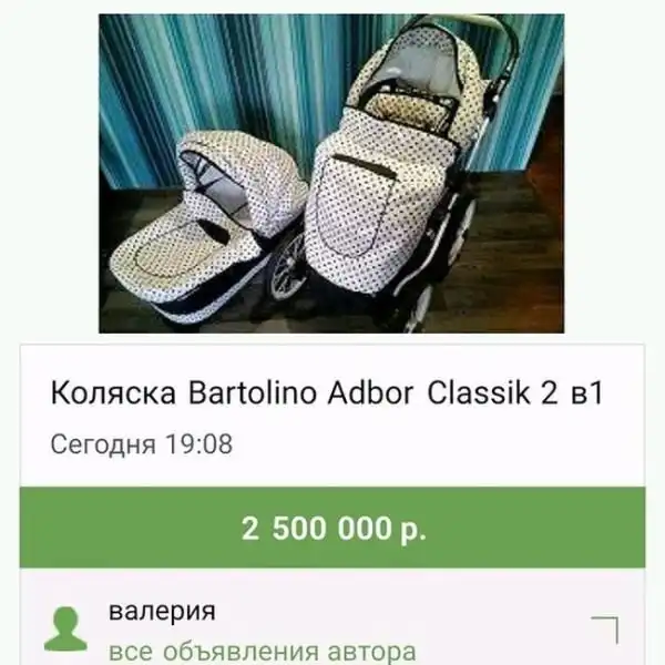 Человек 10 написали, что хотят купить коляску. Один из которых "за любую сумму, что вы назовете".