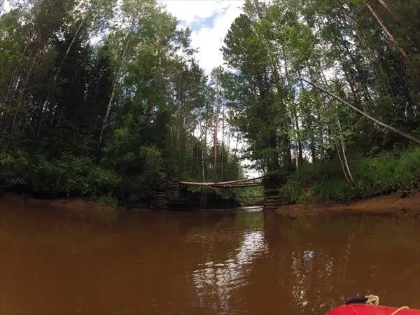 На второй день сплава приехали в Красный Яр, где живёт Геннадий, один в тайге. Иногда завозят к нему продукты из Катайги. Здесь есть шлюз Красный Яр.